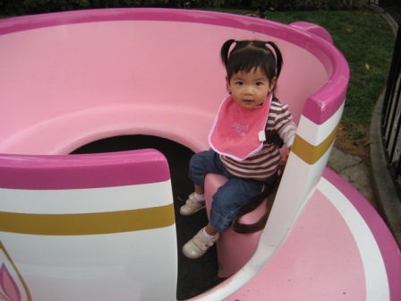 At this magical park, there’s this man-sized mouse with huge ears and tight red pants. I think he owns the park everything was decorated with mouse ears. Mama and I rode in huge rotating tea cups, baby elephants, and one ride had these scary little people come out and sing “It’s a Small World” over and over again.